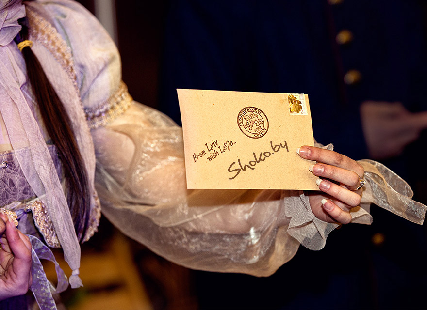 На первом этаже работала шоколадная почта, где каждый желающий мог отправить домой открытку с праздника со словами «Из Львова с любовью».