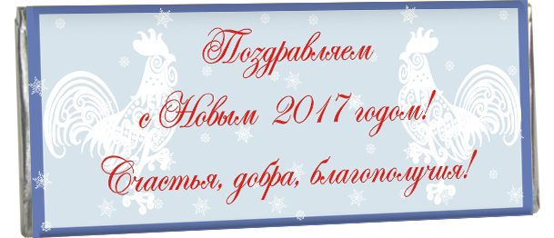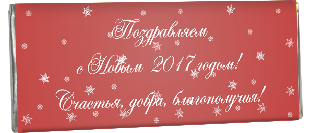 В канун Нового года каждая фирма устраивает своим сотрудникам праздничный вечер. Мы предлагаем Вам удивить ваших коллег и поздравить каждого Новогодней шоколадкой с его именем и логотипом фирмы. Новогодний шоколадка будет очень приятным и вкусным подарком.